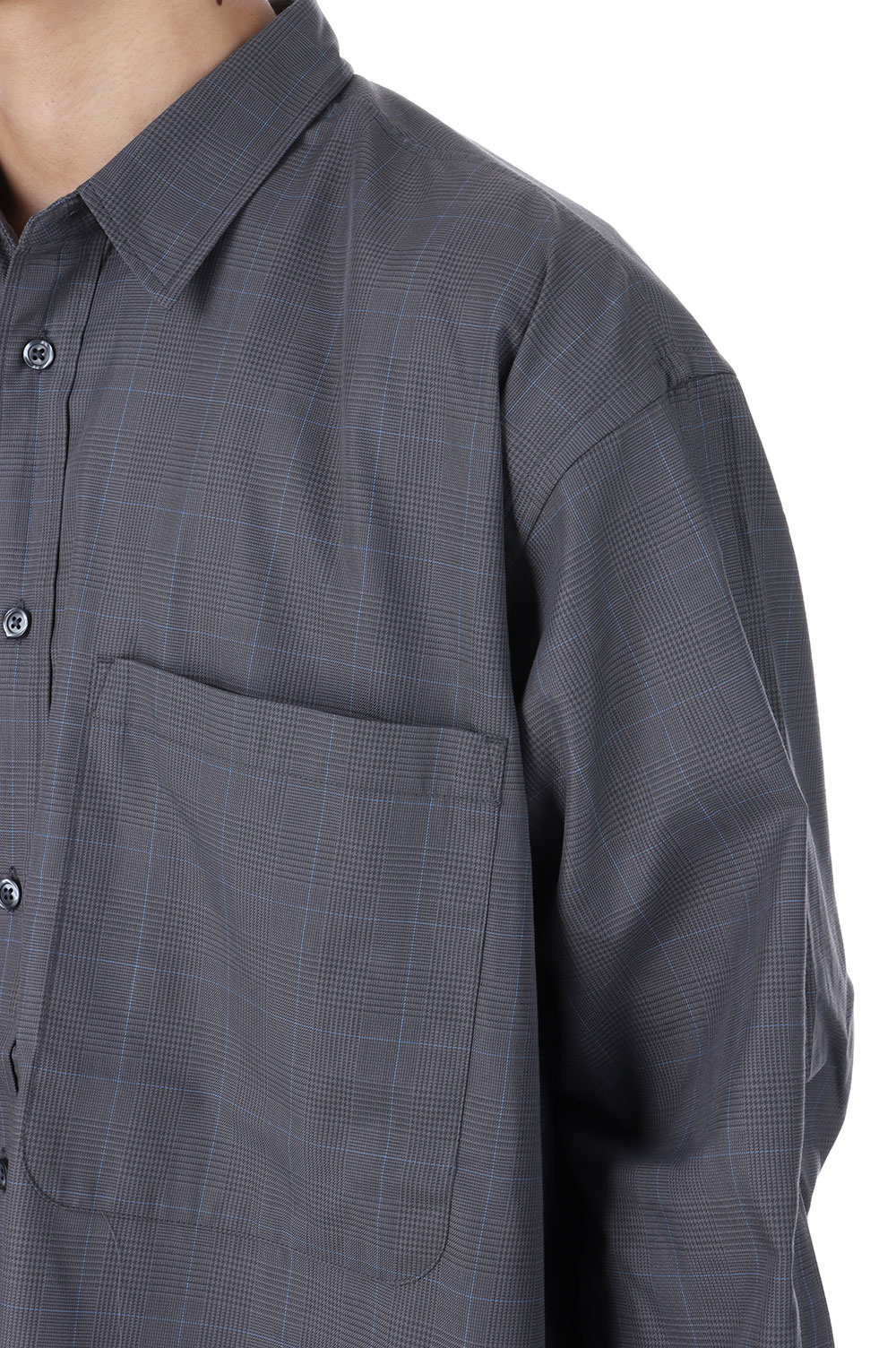TECH REGULAR COLLAR SHIRT L/S GLEN CHECK - GRAY (BE-82025W)