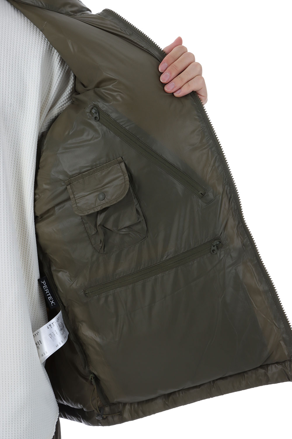 中のダウンが透けて見えるほどの生地を使用。