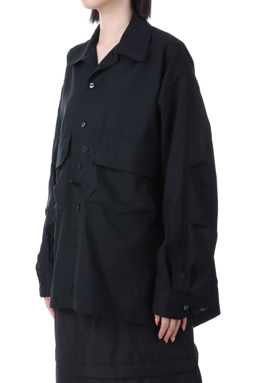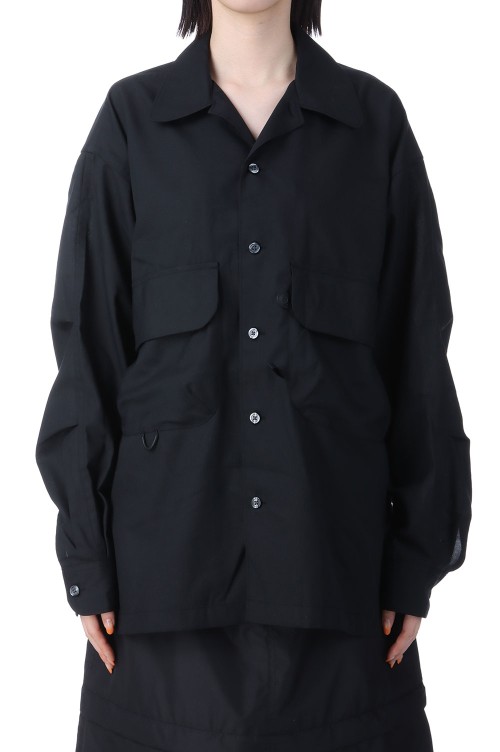 W's TECH SPORTS OPEN COLLAR SHIRT L/S - BLACK (BE-82025L)