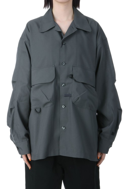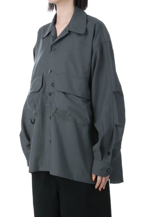 W's TECH SPORTS OPEN COLLAR SHIRT L/S - CHARCOAL (BE-82025L)