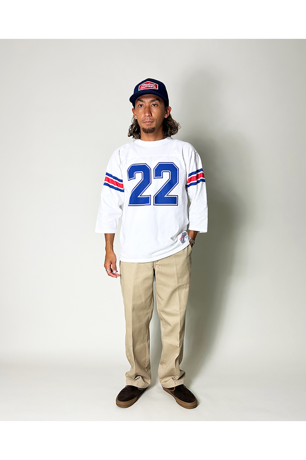 ヴィンテージのフットボールTをイメージした裾ネームもポイントです。