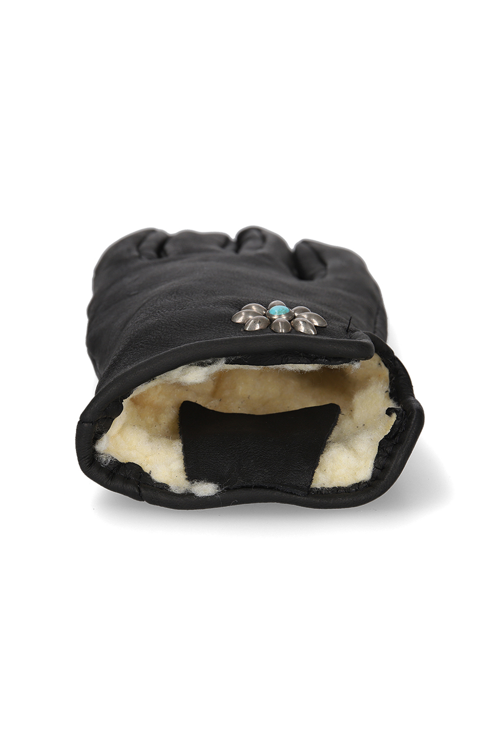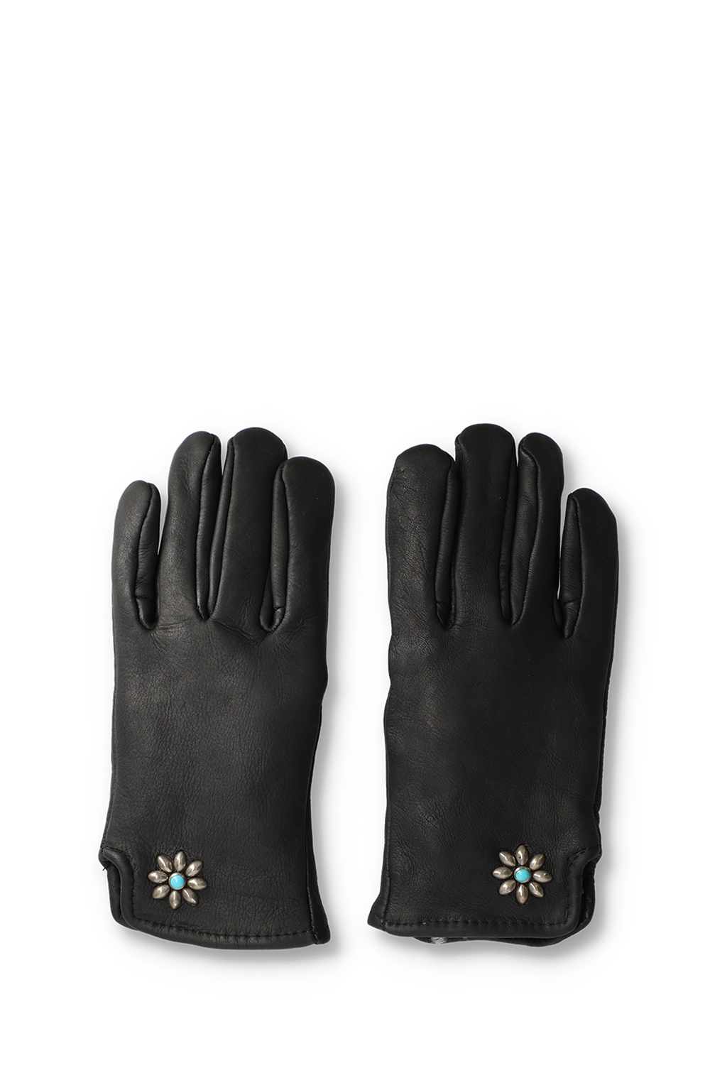 フラワーモチーフとターコイズがレザーグローブによく合います。