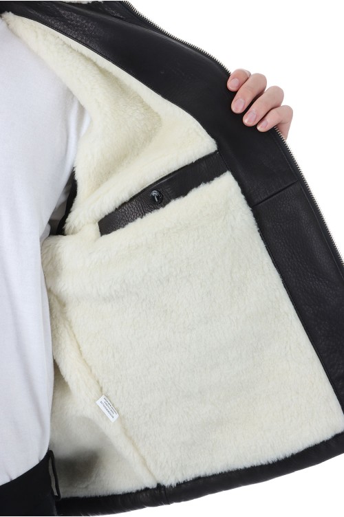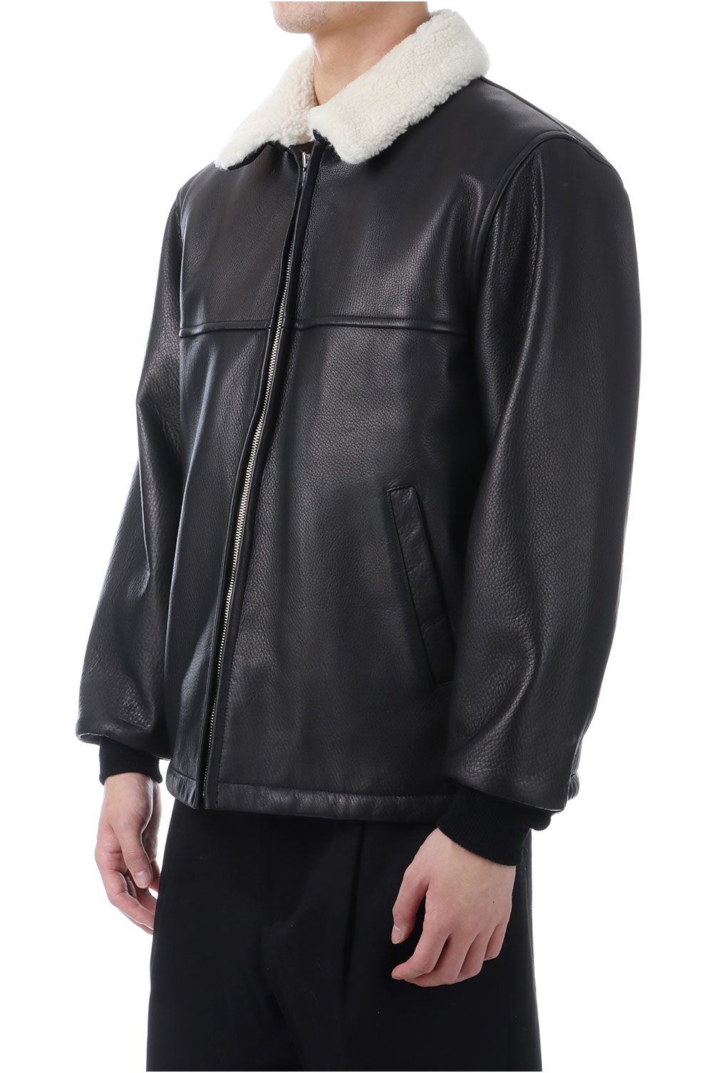LEATHER BOA JACKET / BLACK (25FW-WMO-BL01)