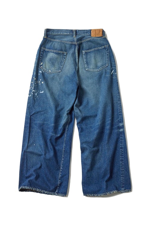 RECYCLED WASTE SUVIN COTTON YARN 11.5oz. DENIM 5POCKET BAGGY PANTS VINTAGE WASHED (ZIPPER FLY) - NAVY (GL42581H)