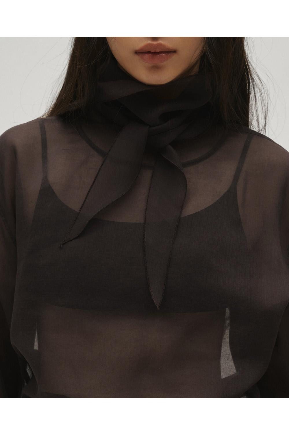 Sheer Tie Blouse - DARK BROWN (12610415)