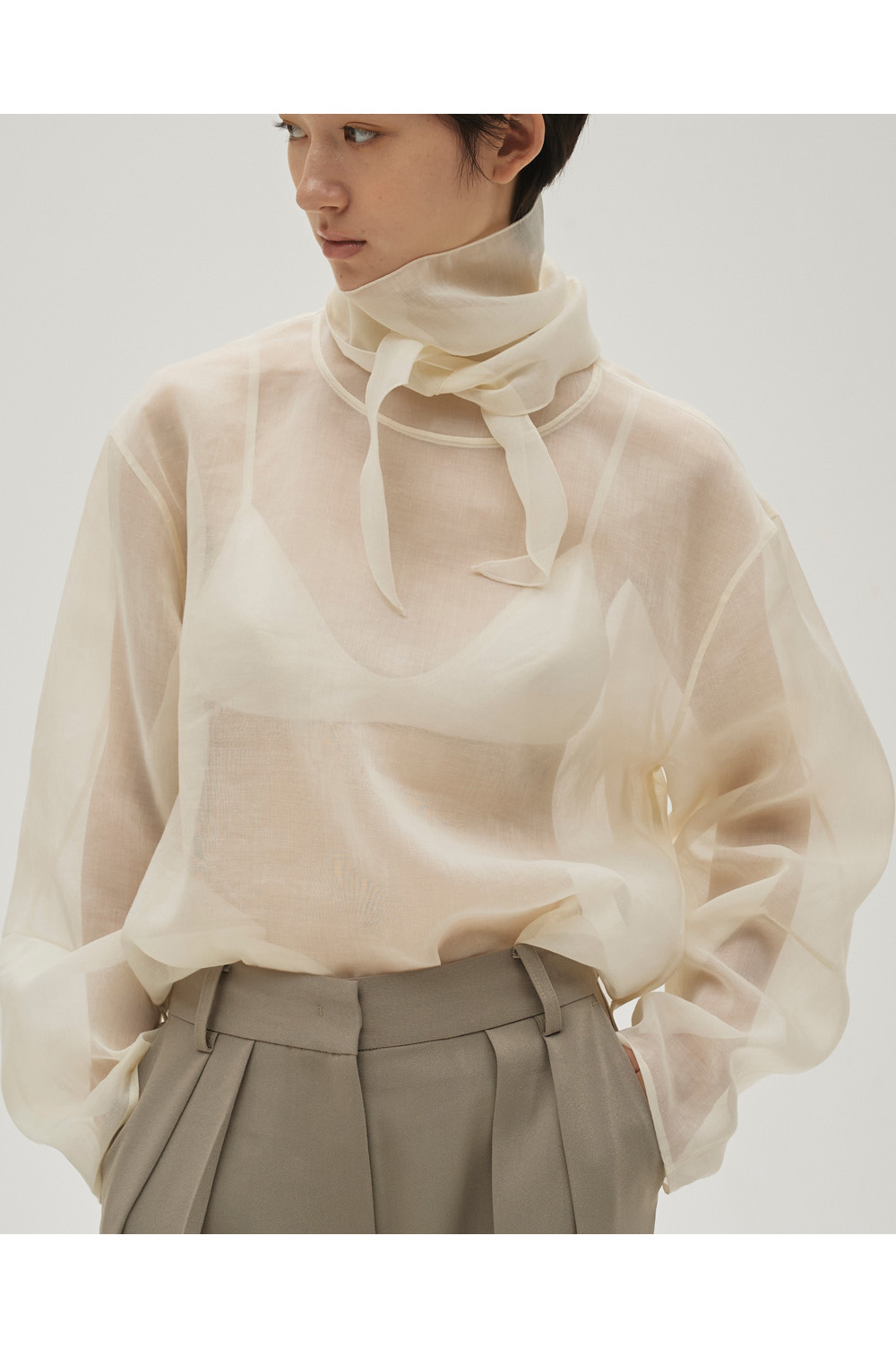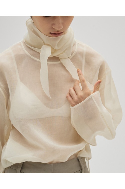 Sheer Tie Blouse - ECRU (12610415)