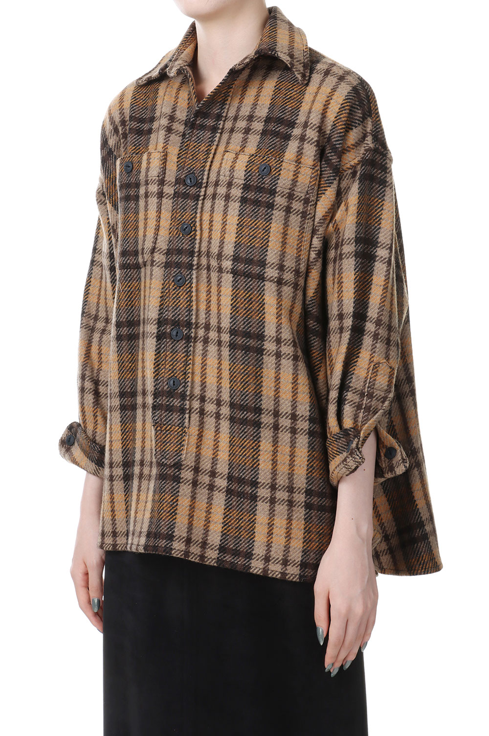 Recycled bishou wool wide skipper shirt-BROWN(18RFATOP-01C)