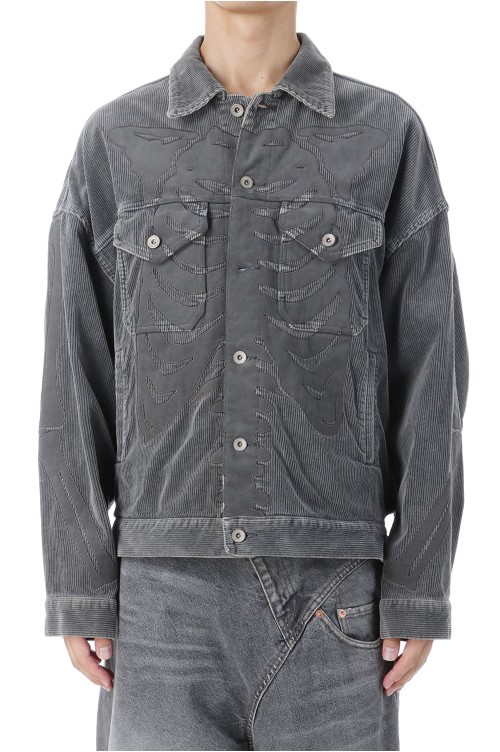 BONE APPLIQUE CORDUROY JACKET - GREY (25AW30BL238)