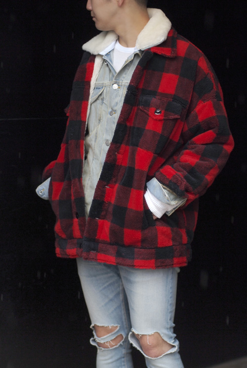 ボアフリースで防寒性を高めたトラッカージャケット。