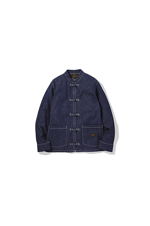 軽いデニム生地を使った、チャイナジャケット。