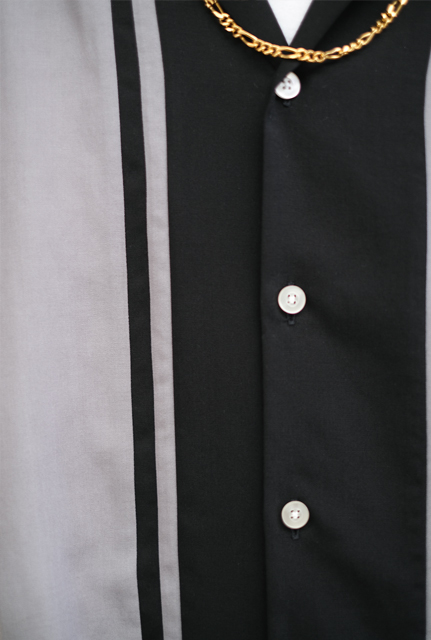 ブラックで切り返された、2トーンのオープンカラーシャツ。