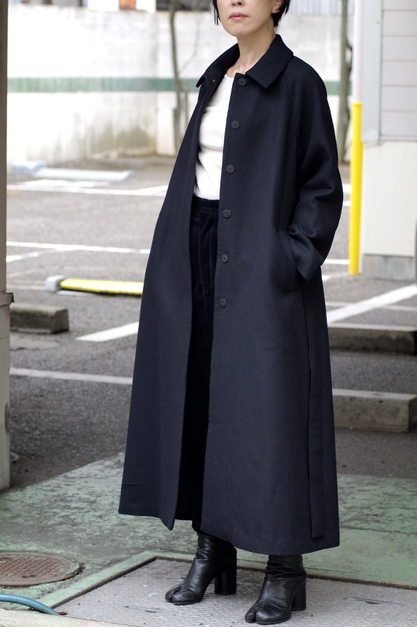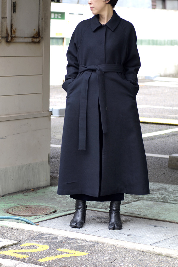 上質なウール素材を使用したステンカラーコート。