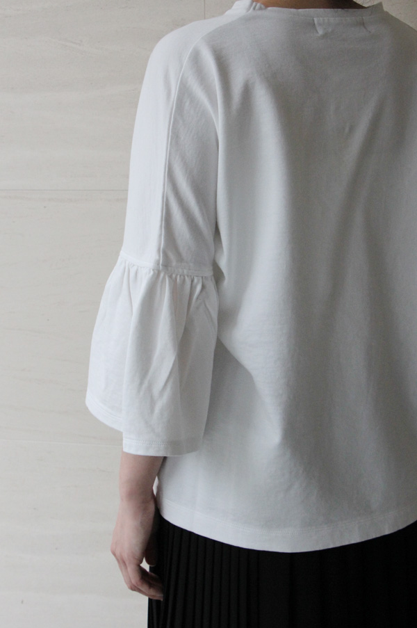 Tシャツをラッフルスリーブにしたイメージ。