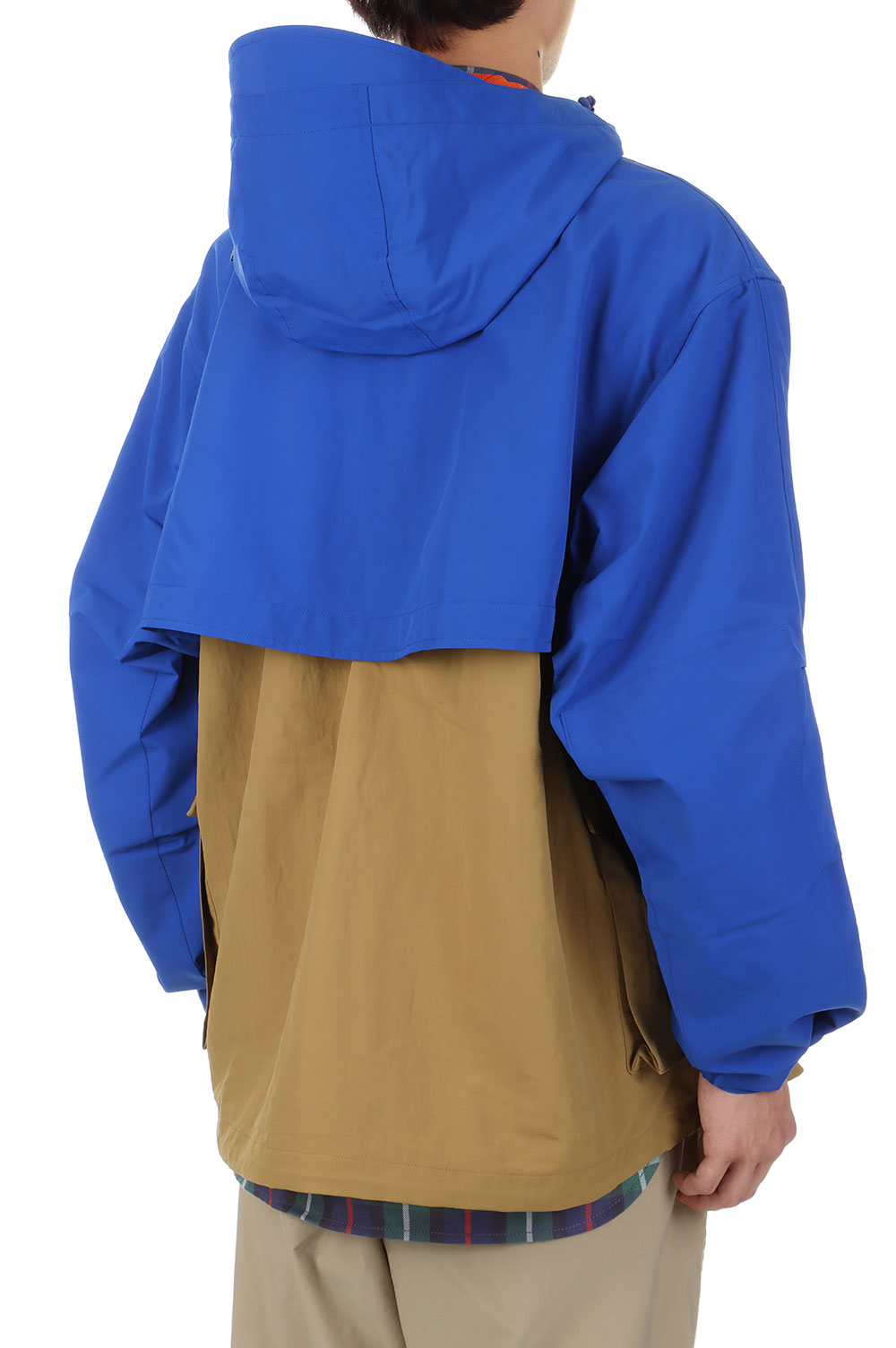 マウンテンパーカと肩、袖を別生地にて補強した