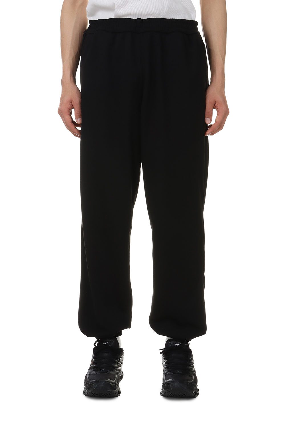 スパンポリエステル素材のスウェットパンツ。