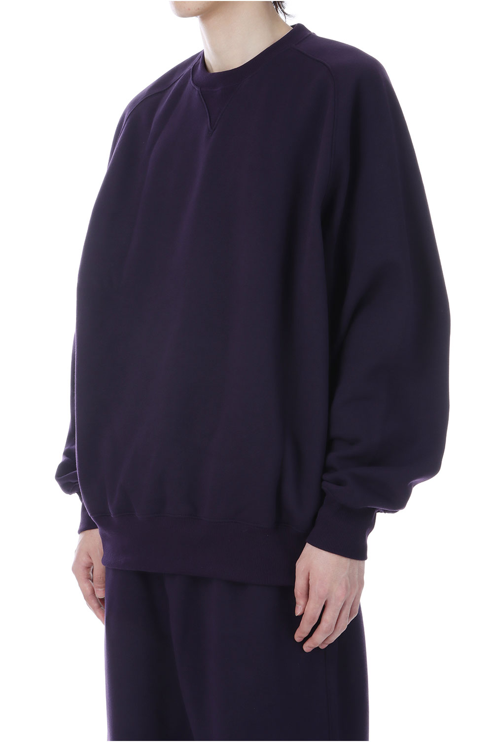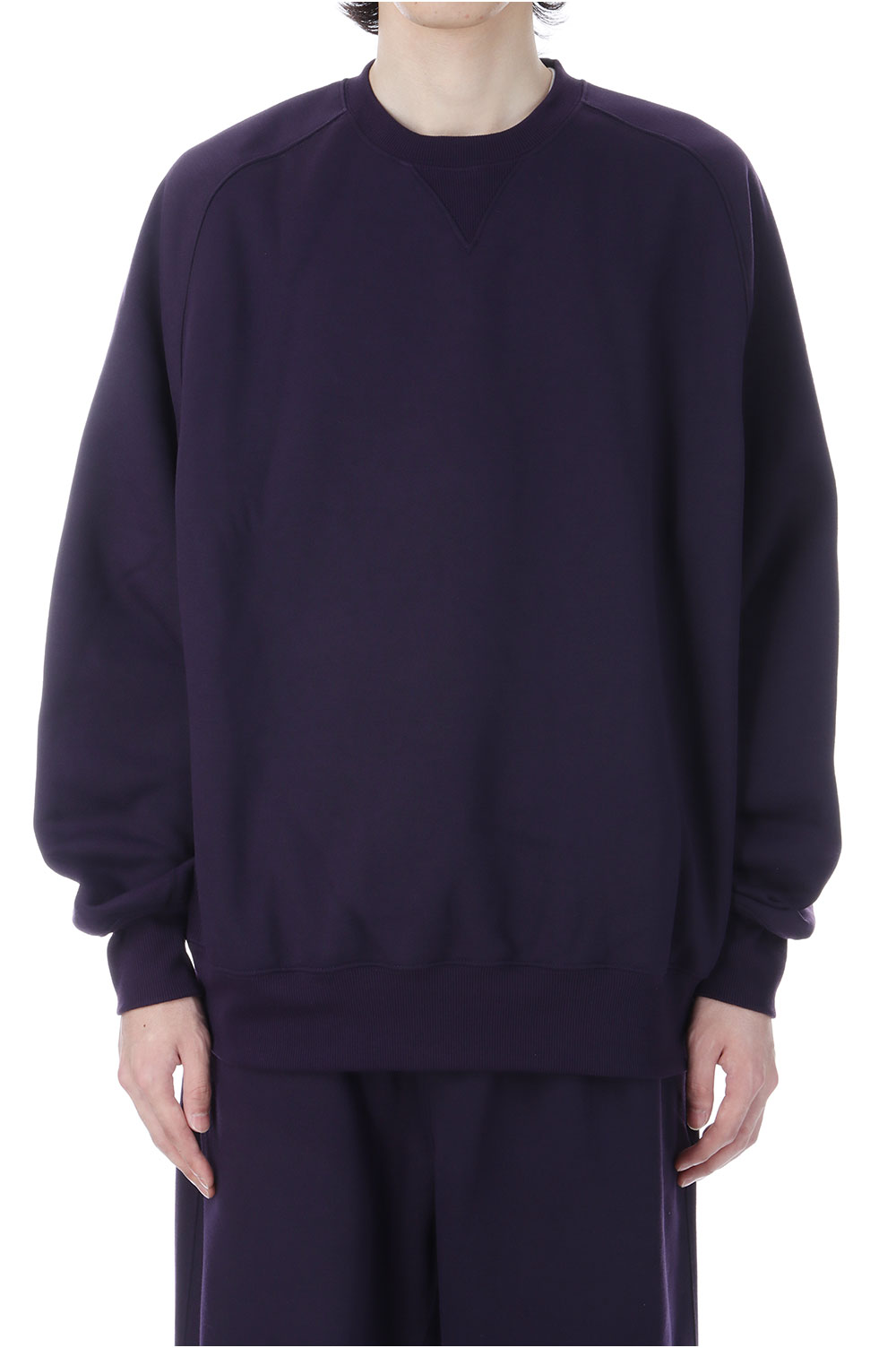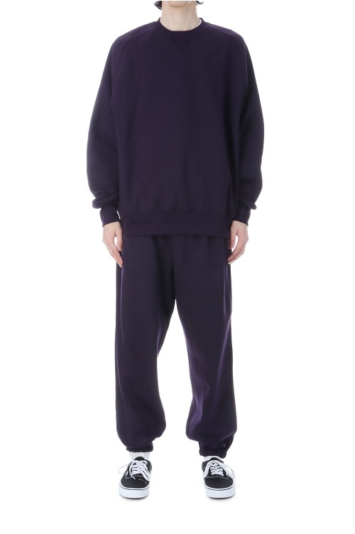 ポリエステル素材のヘヴィウェイト裏毛を使用したクルーネックスウェット。