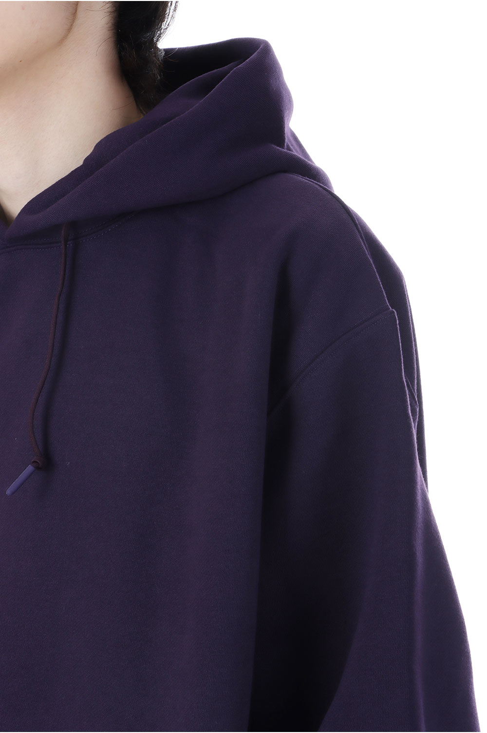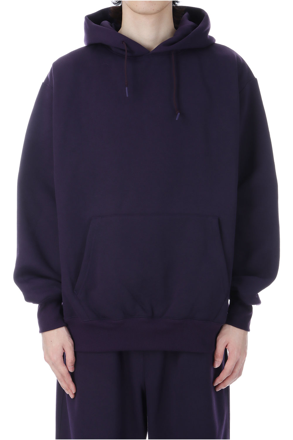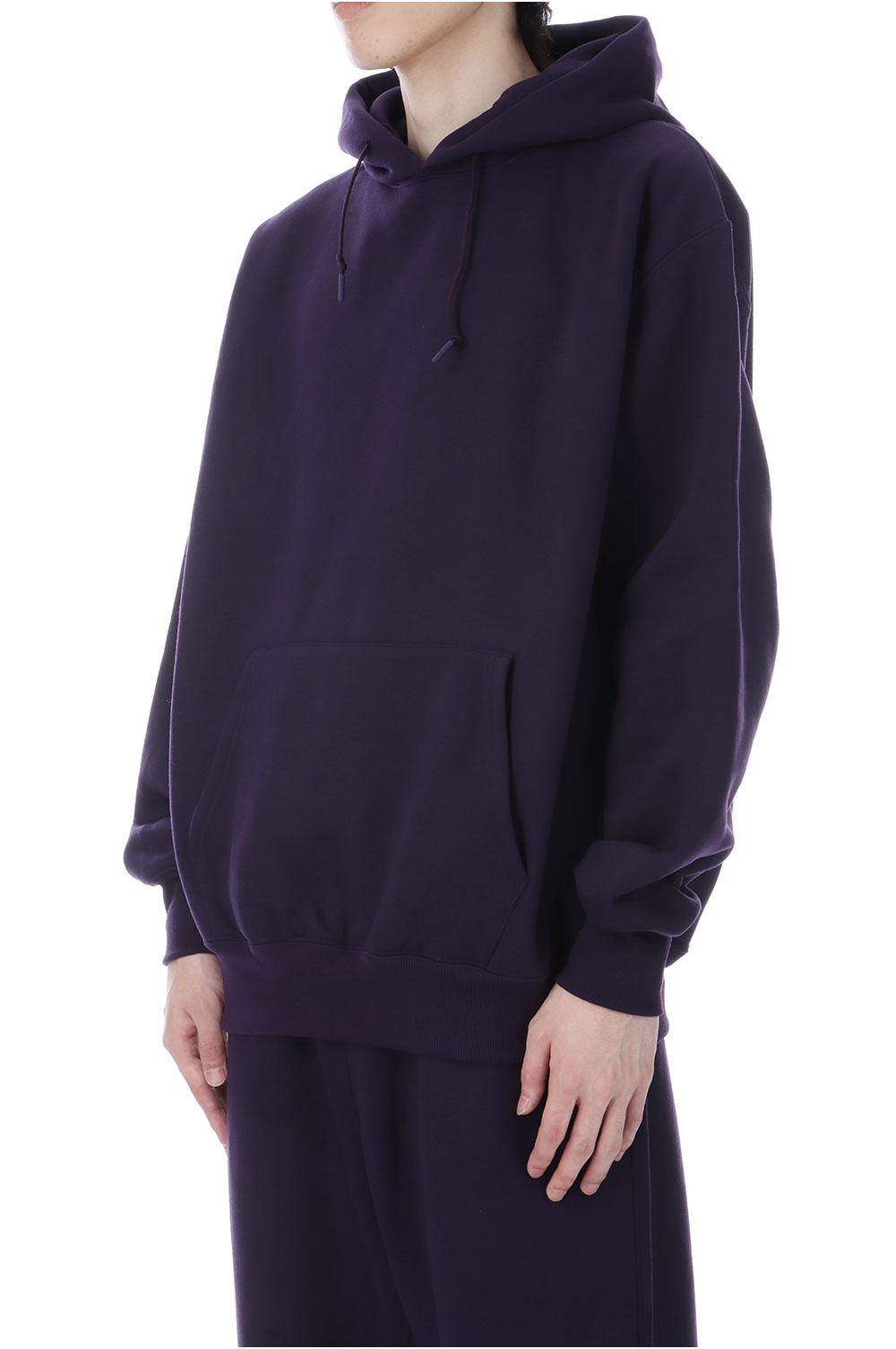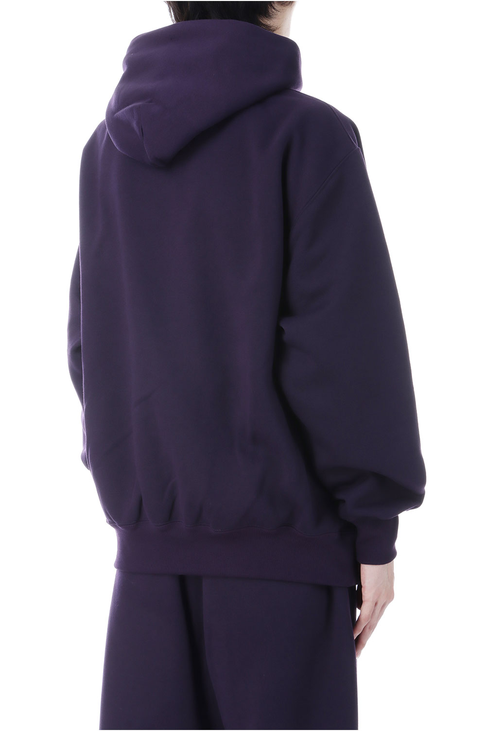 ポリエステル素材のヘヴィウェイト裏毛を使用したスウェットフーディ。