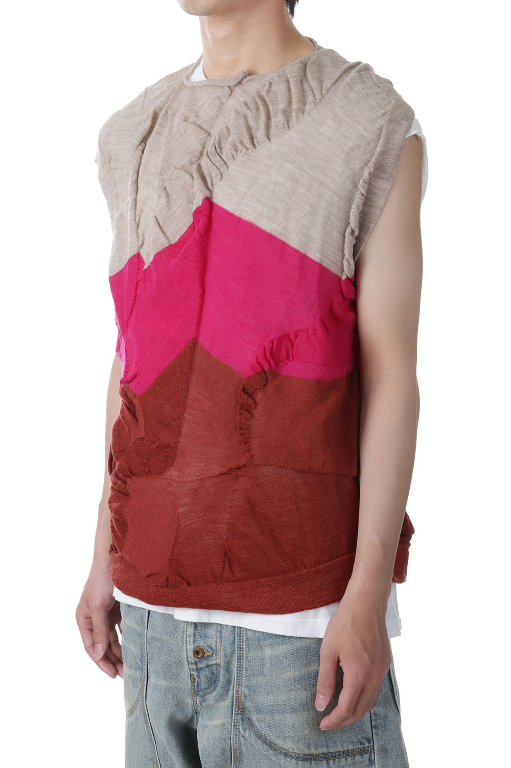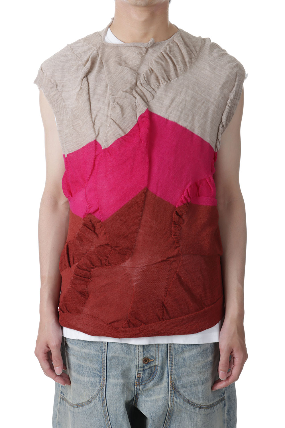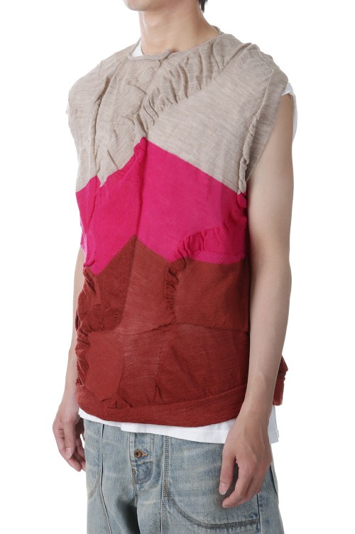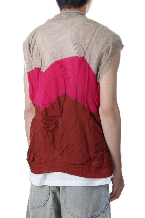 Waterscape Knit Vest(AY10-30)-Pink Border-