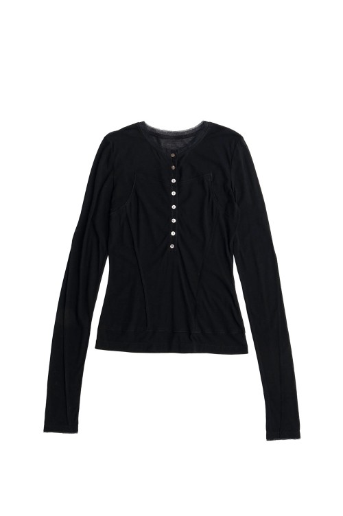 Henley Neck Sheer Top - BLACK (21261415204)