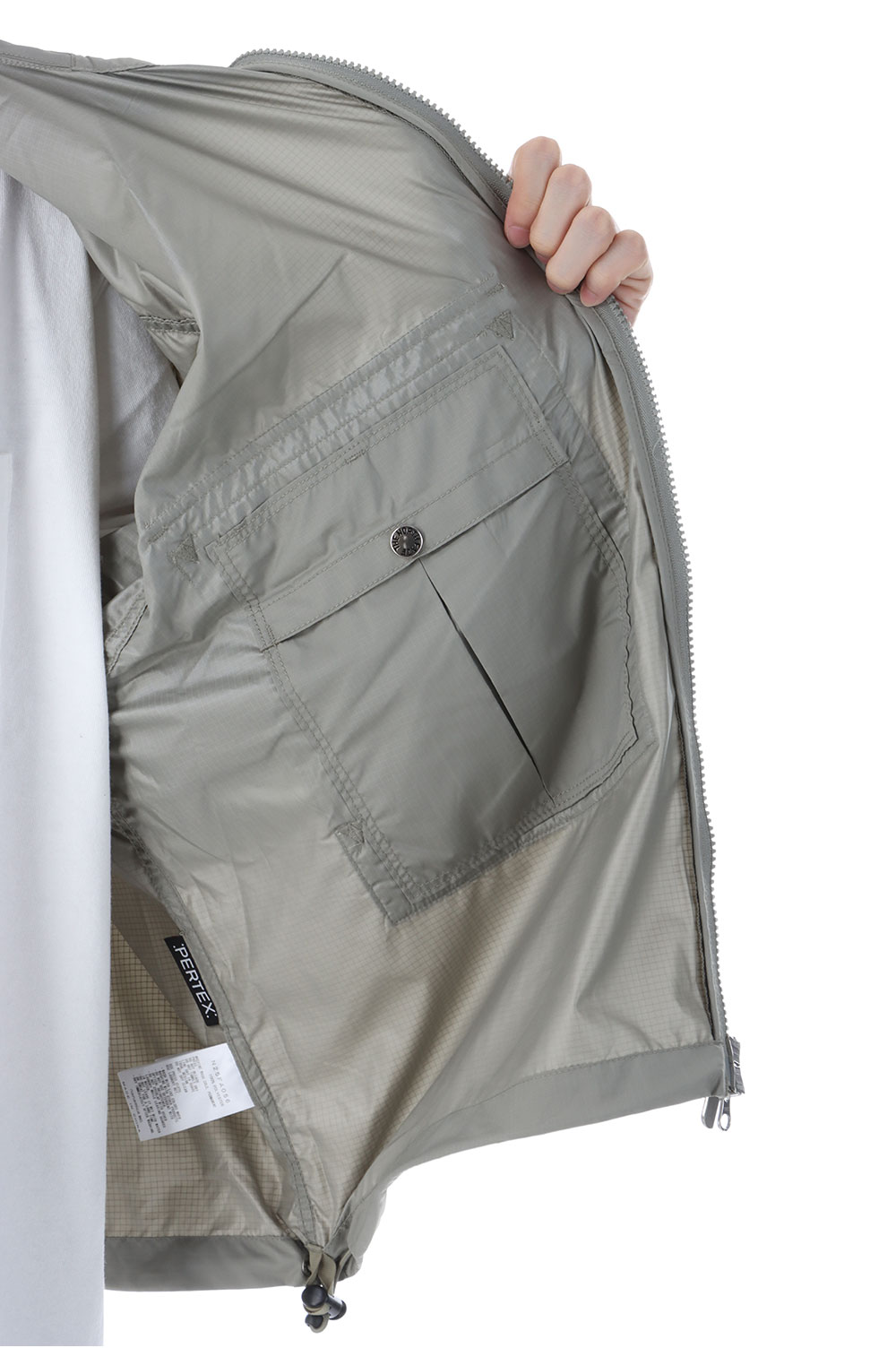 PERTEX QUANTUM 50Dリサイクルポリエステルリップストップを使用したマウンテンウインドパーカ。