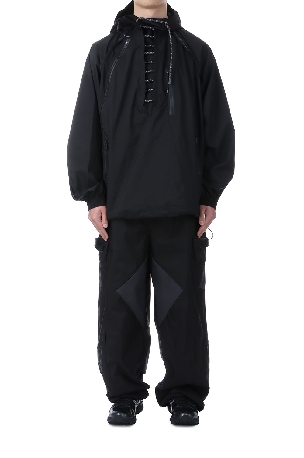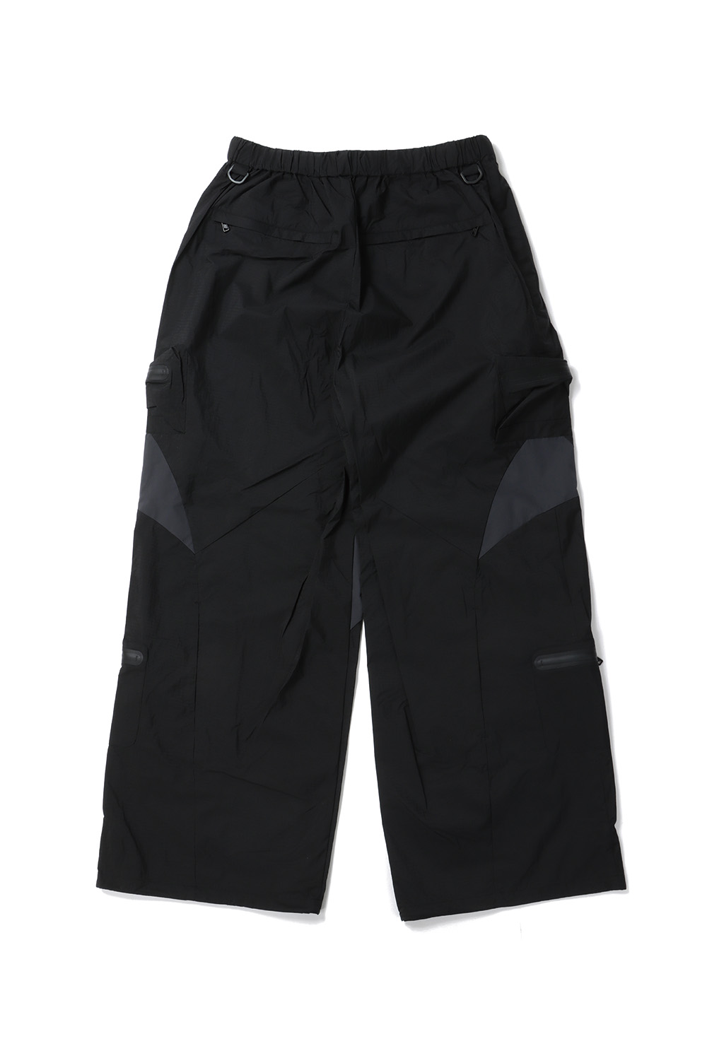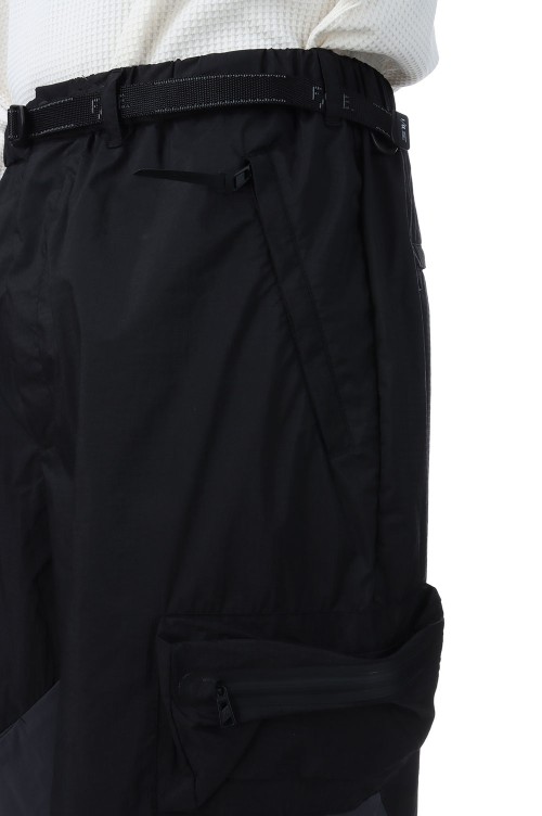 2.5レイヤー素材を使用したタック入りのワイドパンツ。