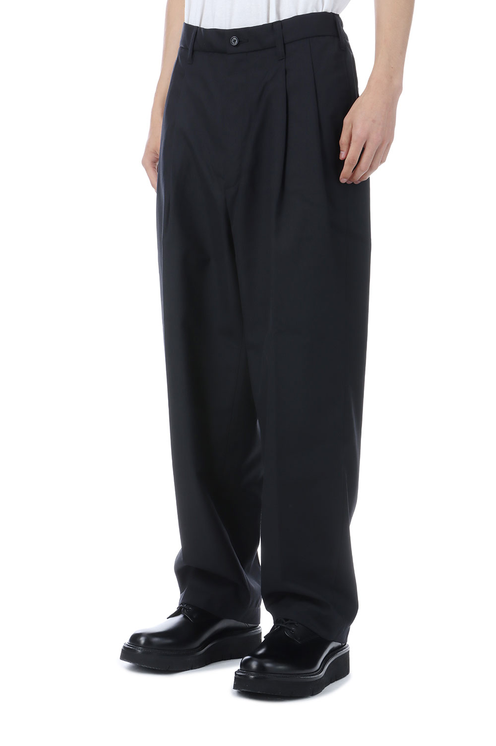 T/W Saxony 2 Tuck Wide Easy Trousers - Black (CTE-25A107)