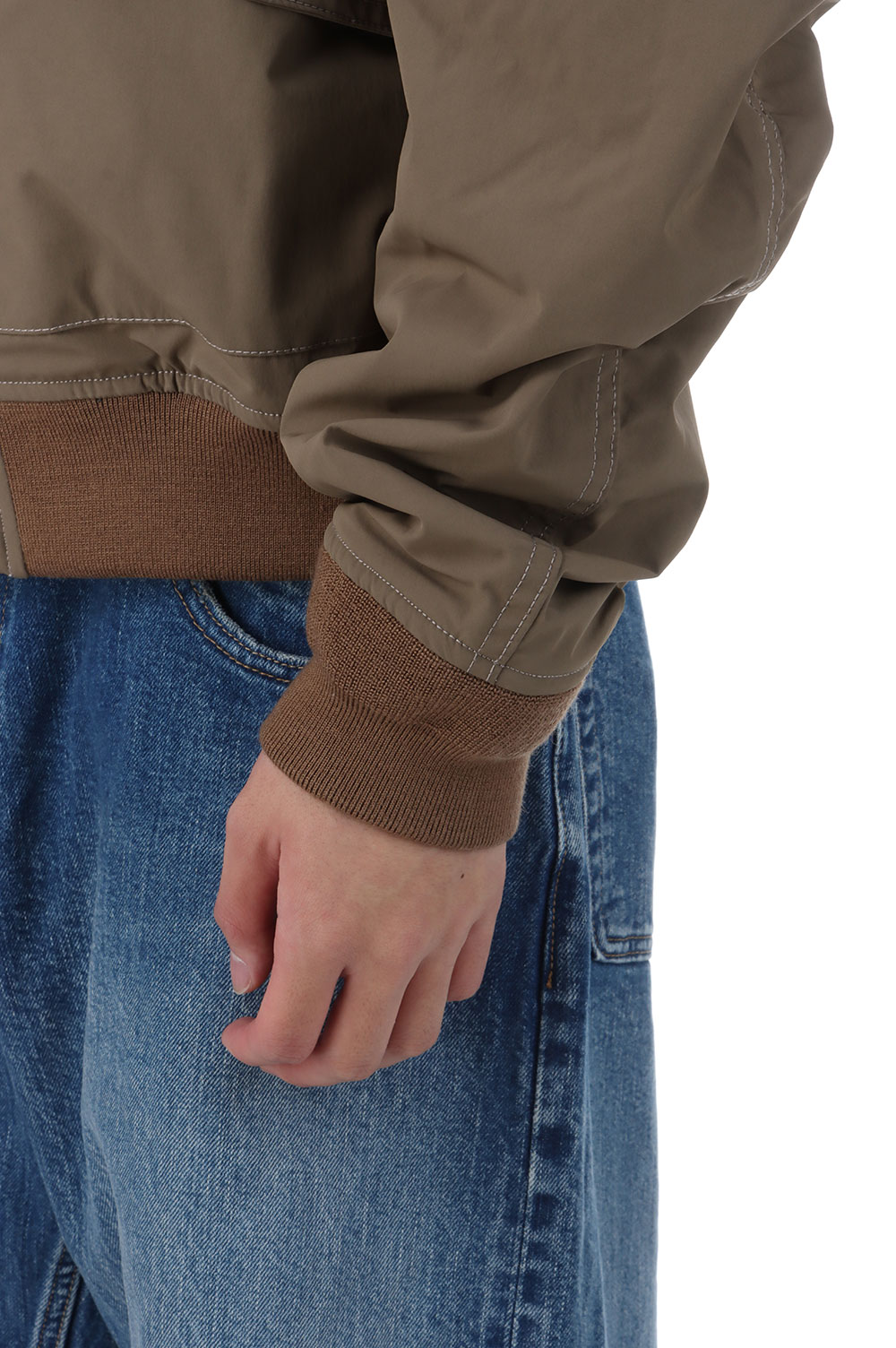 このジャケットのために編み上げたリブは表裏で異なるカラーにしたこだわりの1着です。
