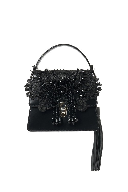 black lei beads mini hand bag - Black (TD-25AW-BG04)