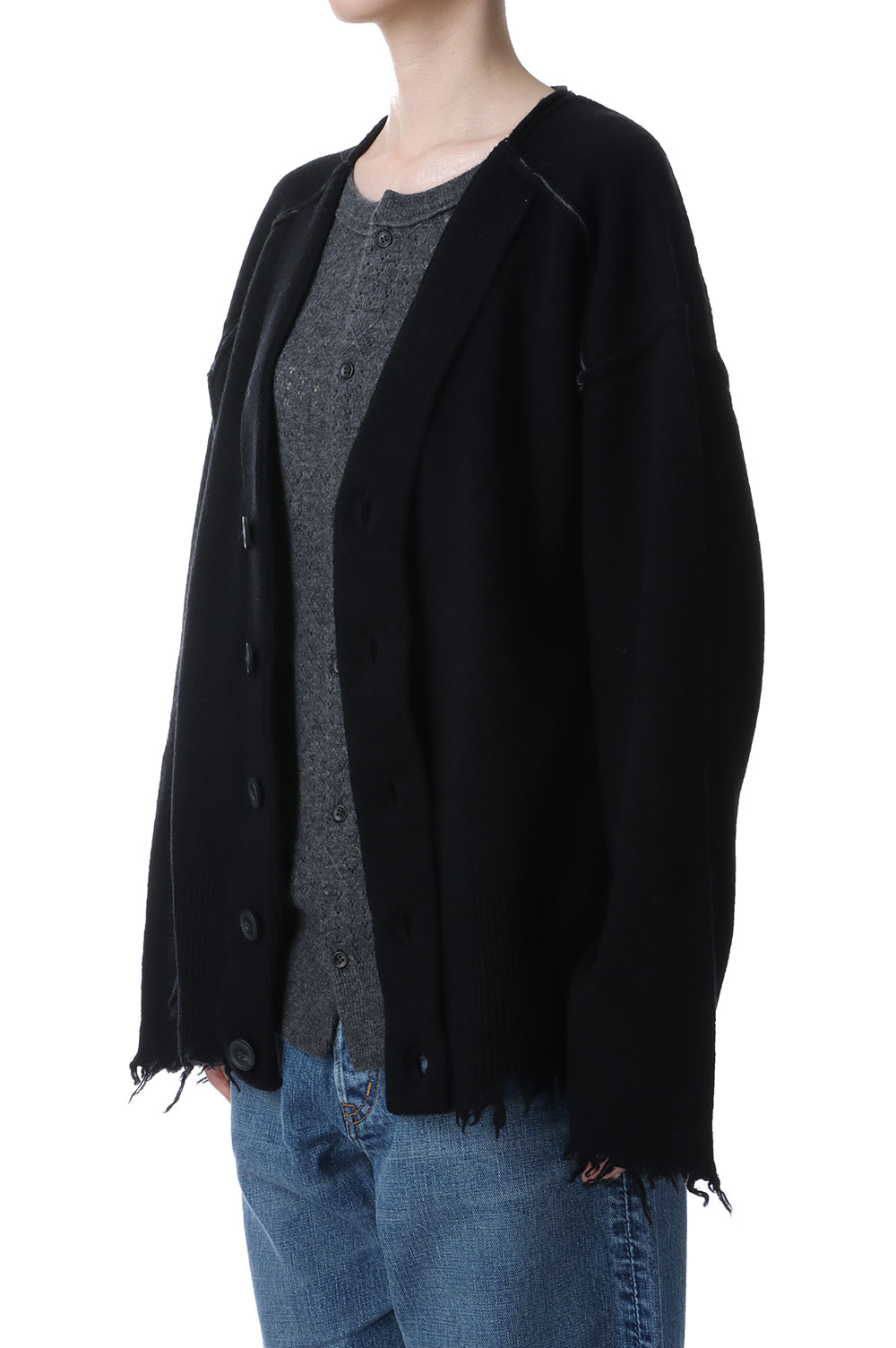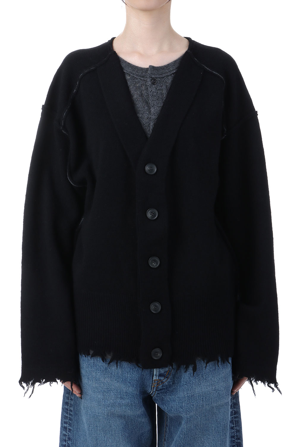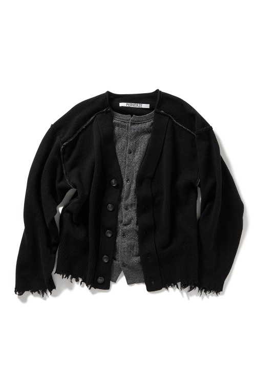 Lambs-wool Layered Knit Cardigan - BLACK (0125030504)