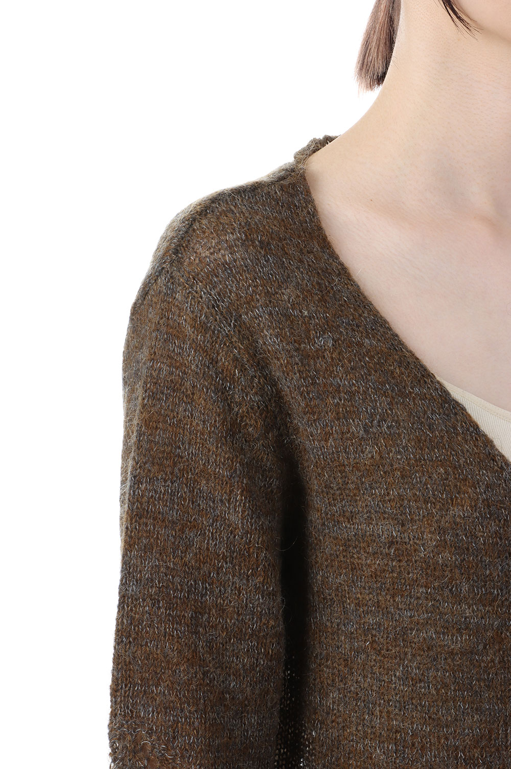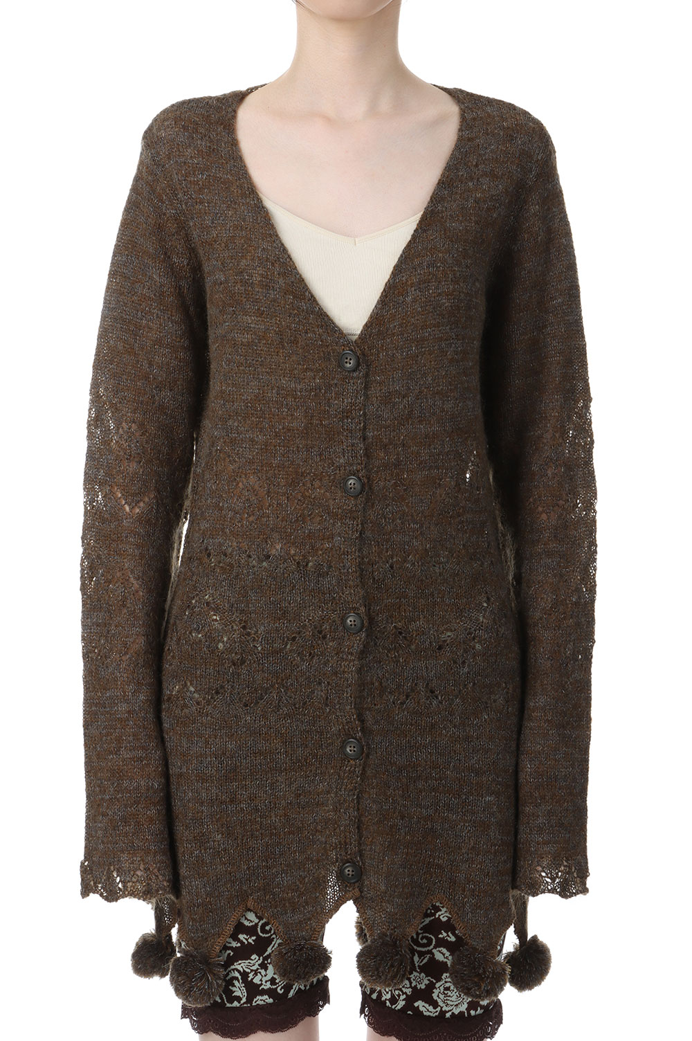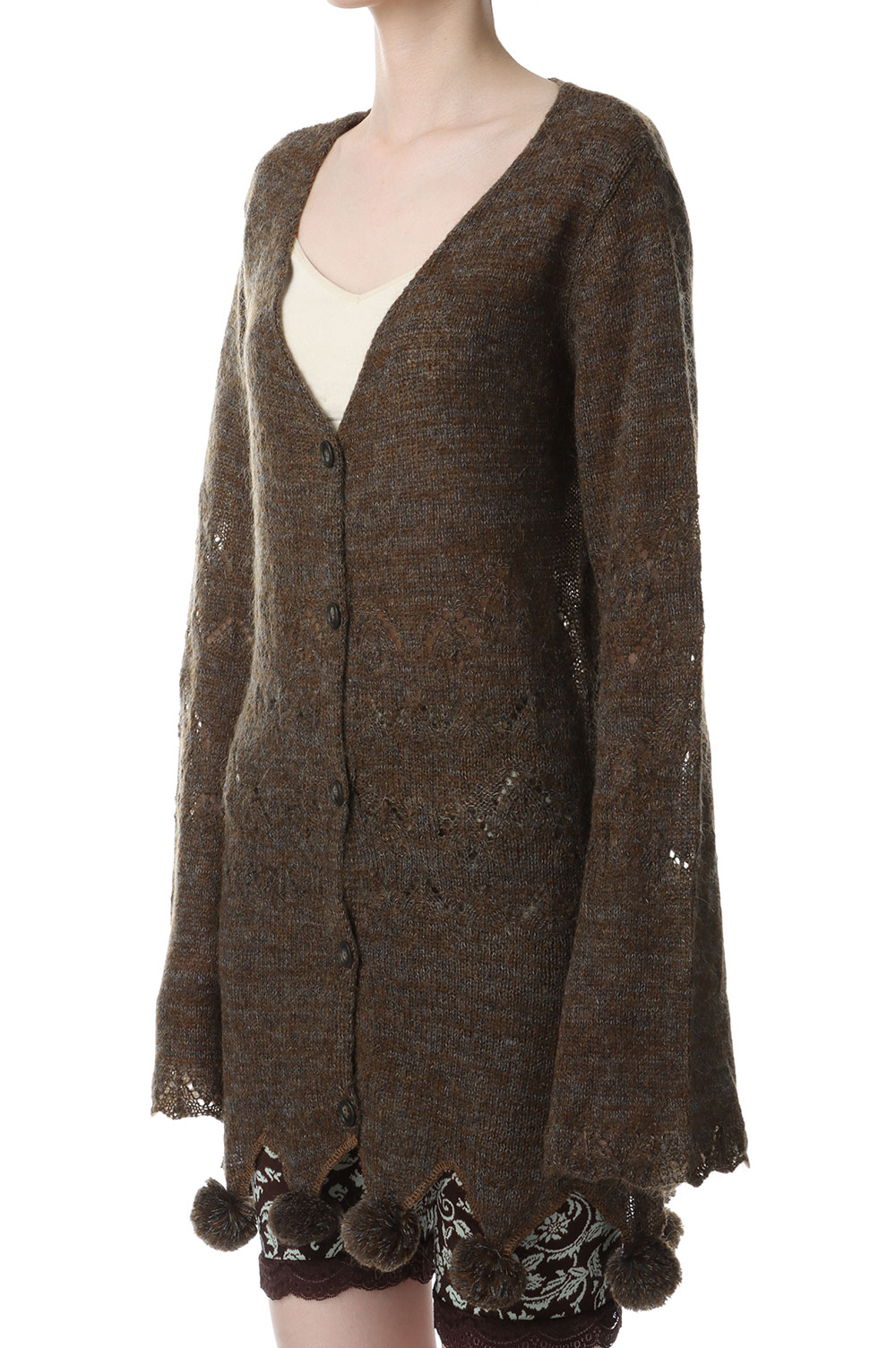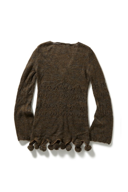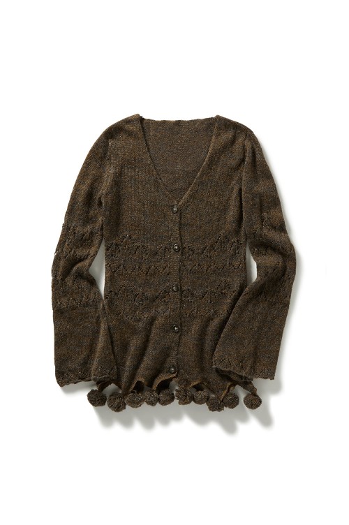 Pom-pom Mohair Knit Cardigan - BROWN (0125030512)