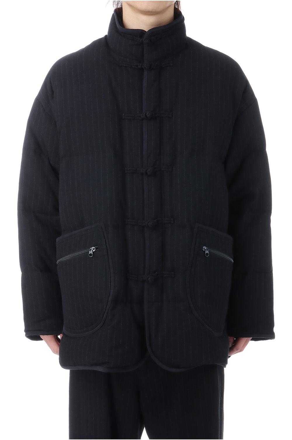 PIN STRIPE CHINESE DOWN JACKET / BLACK (PC-031-3606)