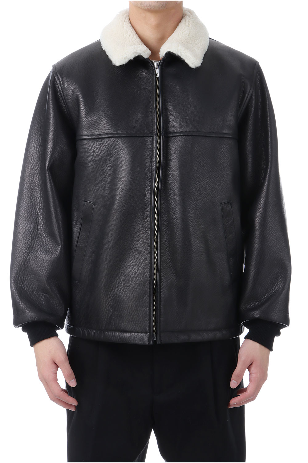 LEATHER BOA JACKET / BLACK (25FW-WMO-BL01)