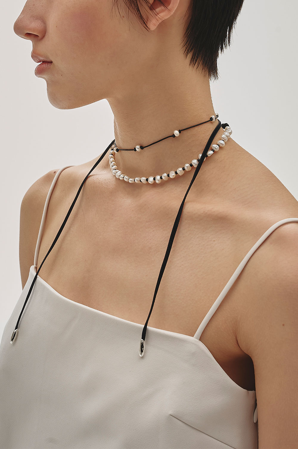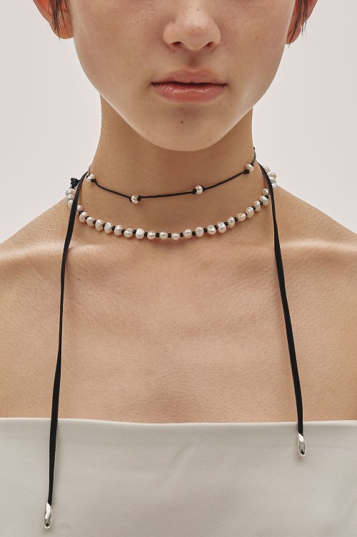 Pearl Ribbon Choker - BLACK (12510909)