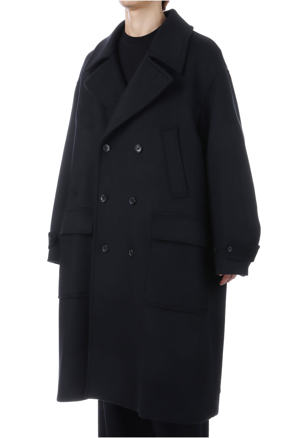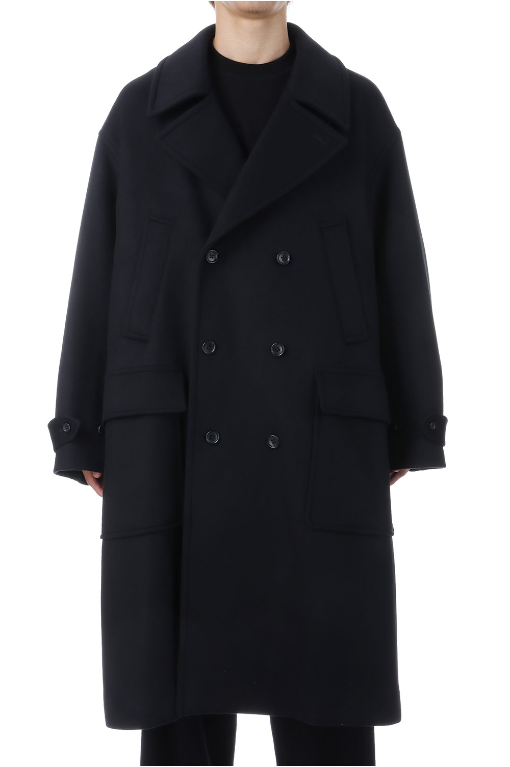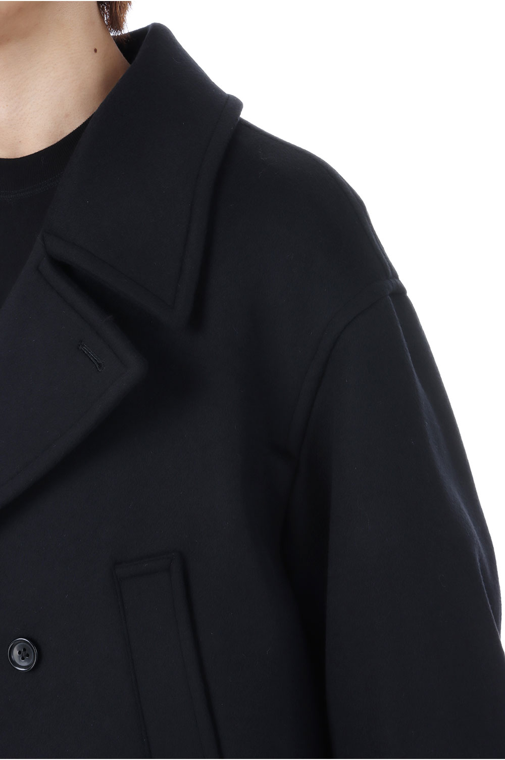 Light Melton Pea Coat - BLACK (GM253-10266B)