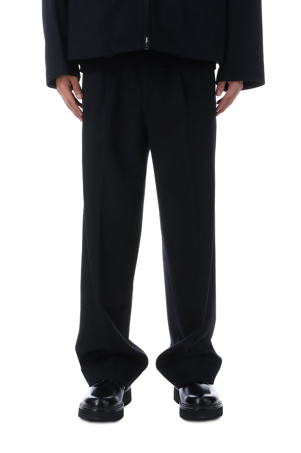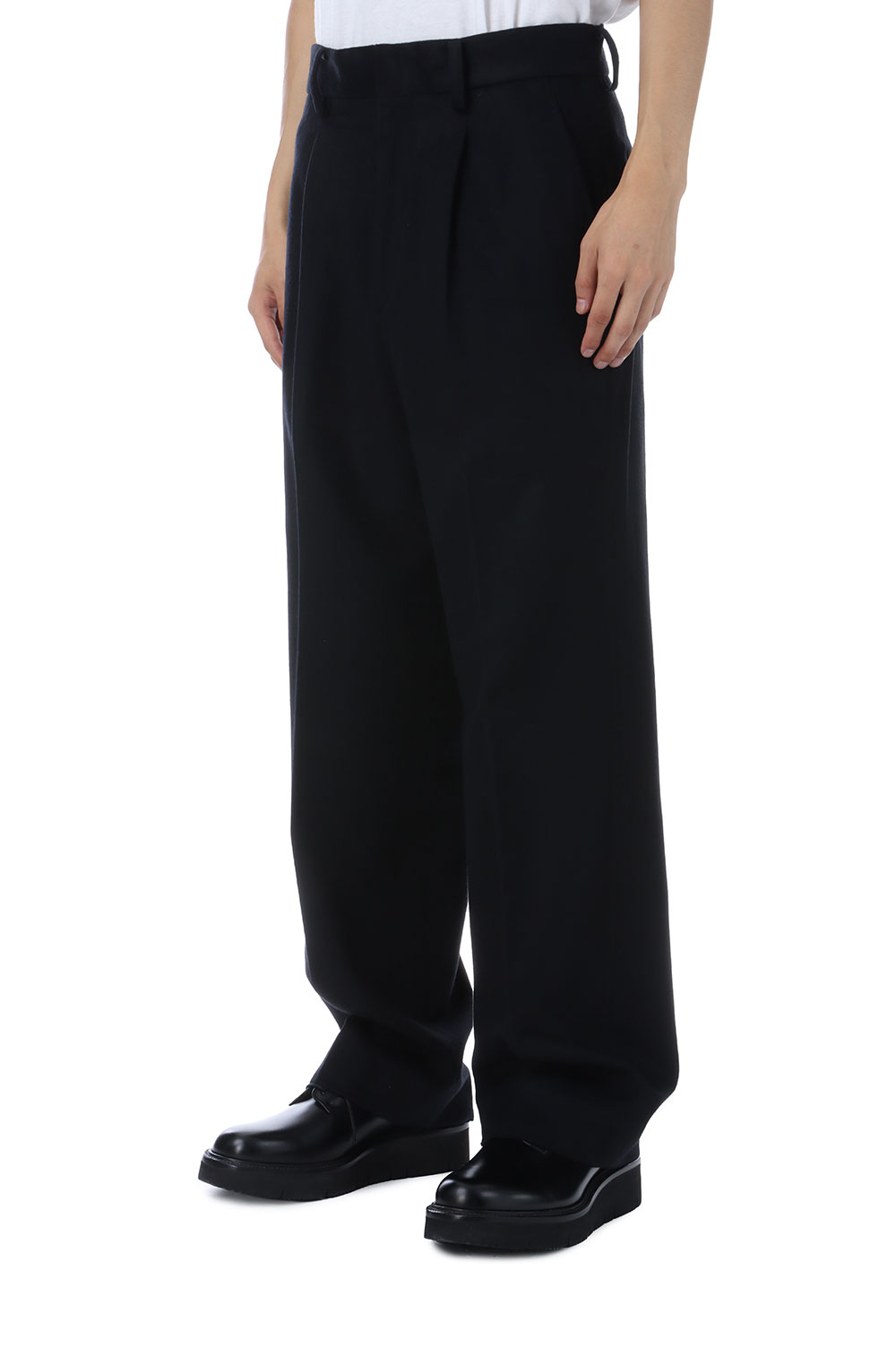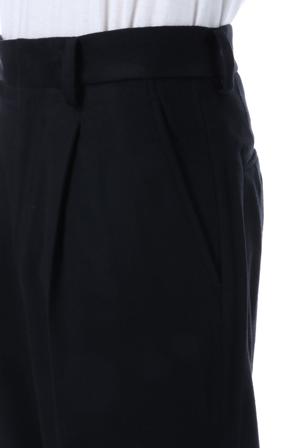 すっきり目に設定したワンタックトラウザーズ。